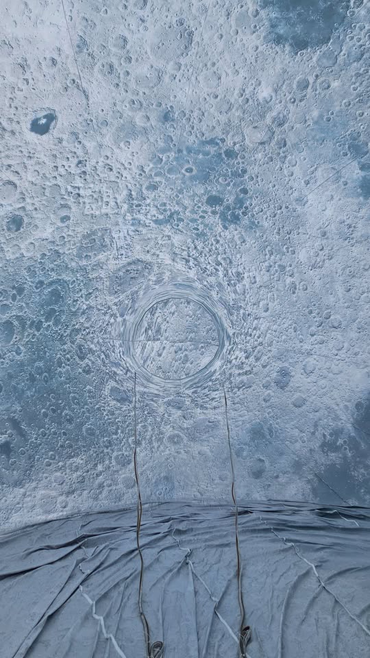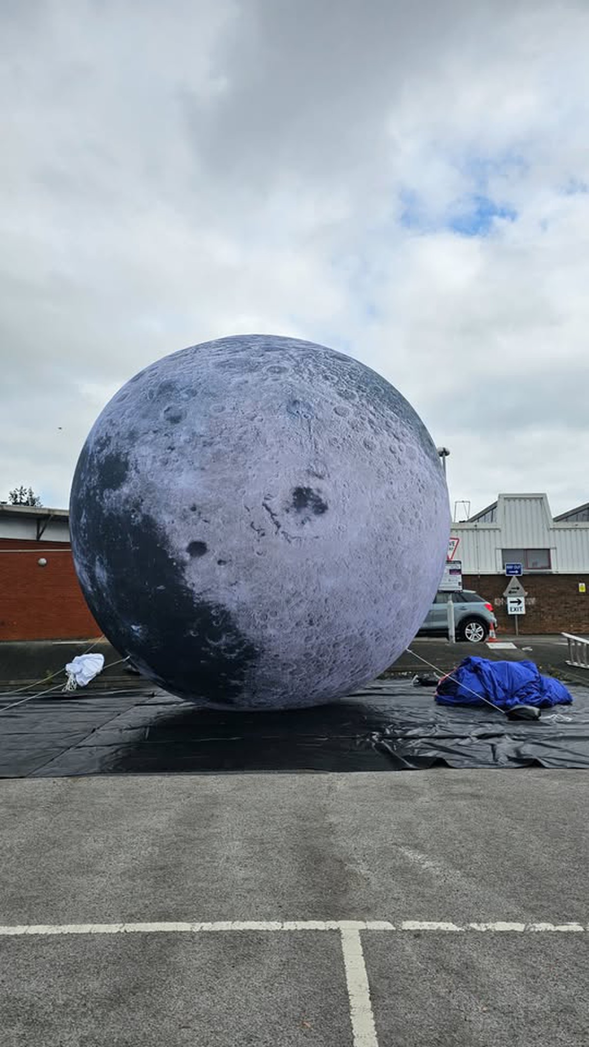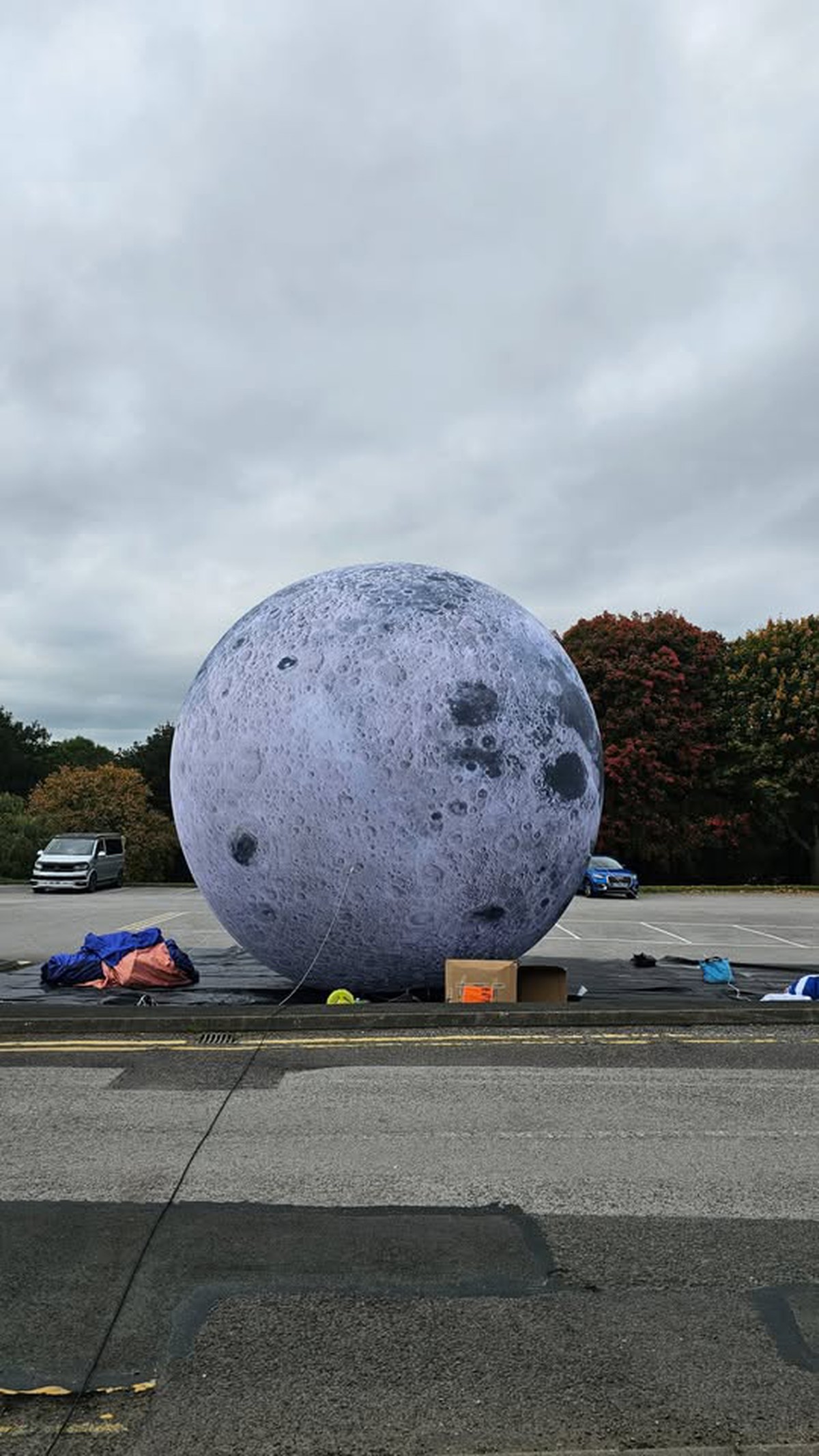 6m Inflatable Moon with Misprint on the bottom.Produced as a hanging inflatable for displays and events.