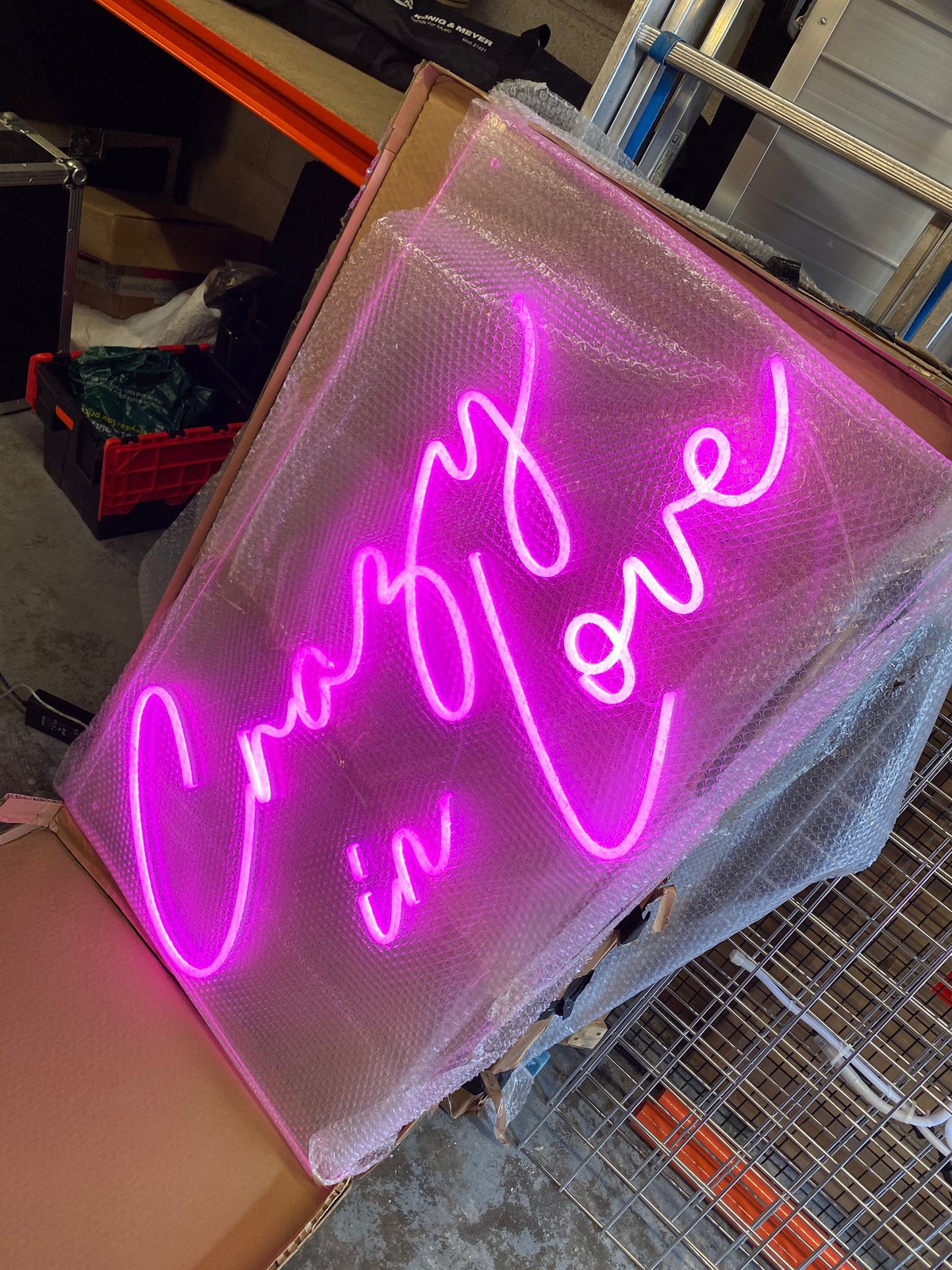 Two wedding LED neon signs and copper stand. Signs are over 1m wide for a big statement.Excellent condition and working.