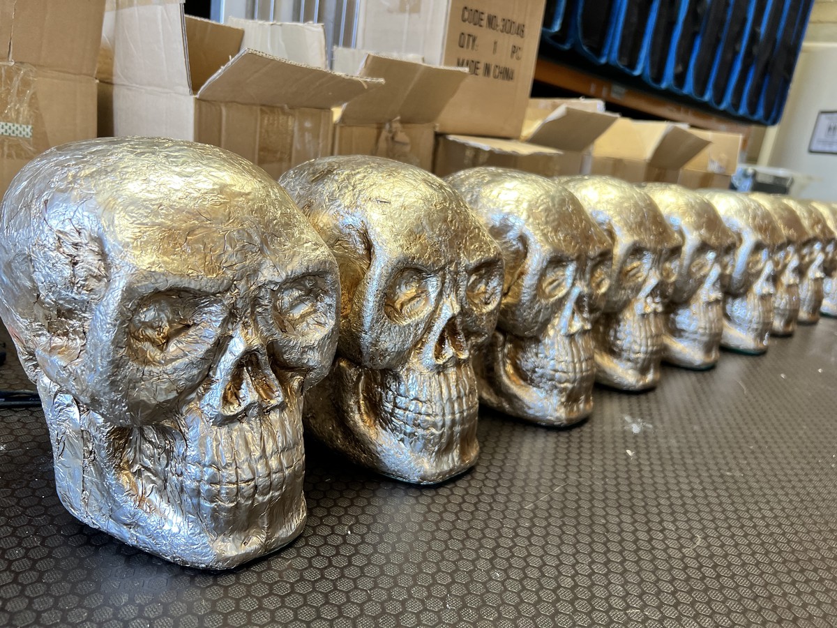Quantity: 10 Skulls (mixed silver/gold metallic finishes)