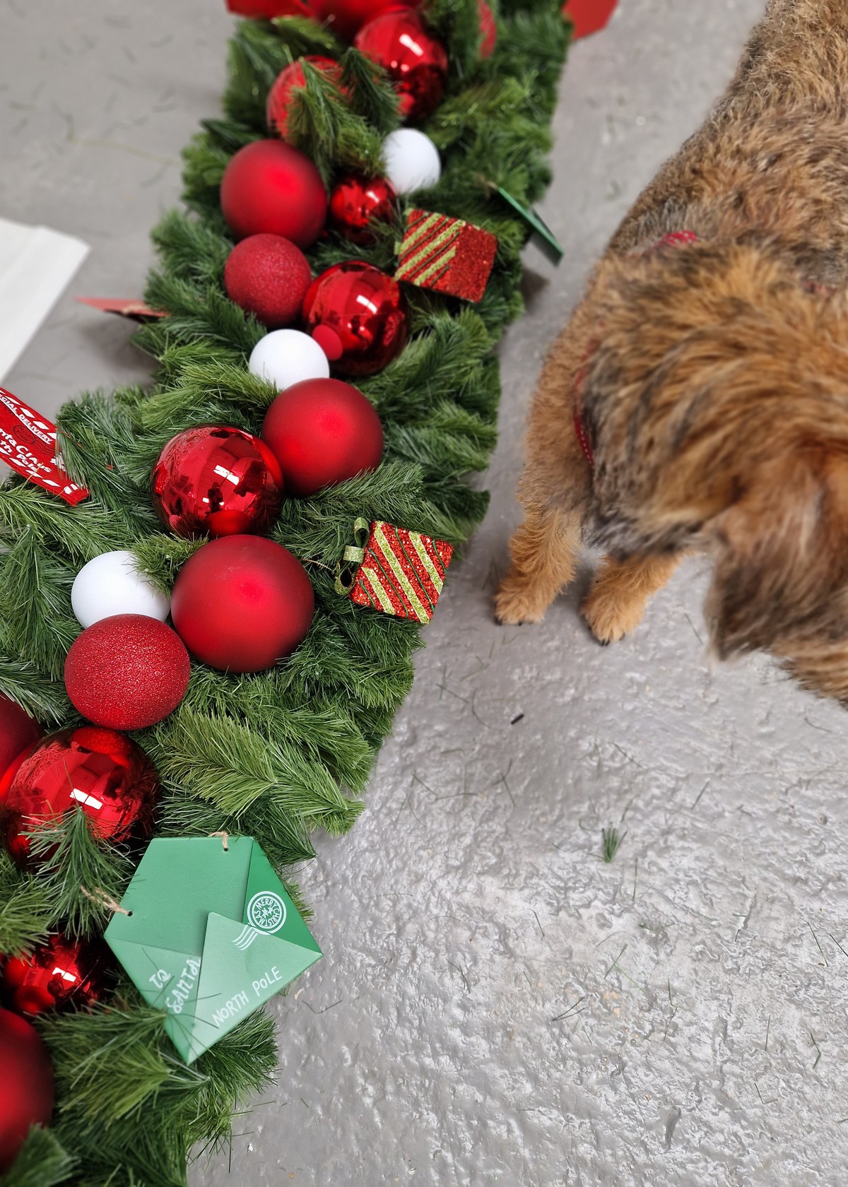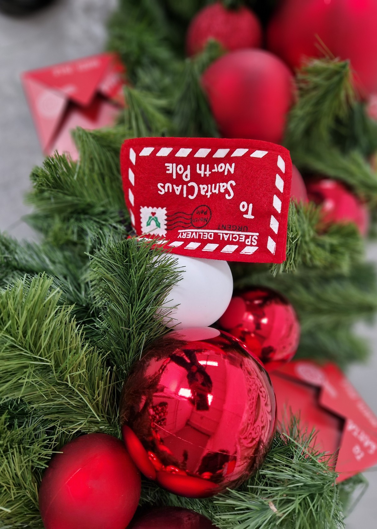 Fun Christmas window garland perfect for a retail display or luxury home.x3 2.7m red and white dressed garlands luxury British made soft to touch approx.