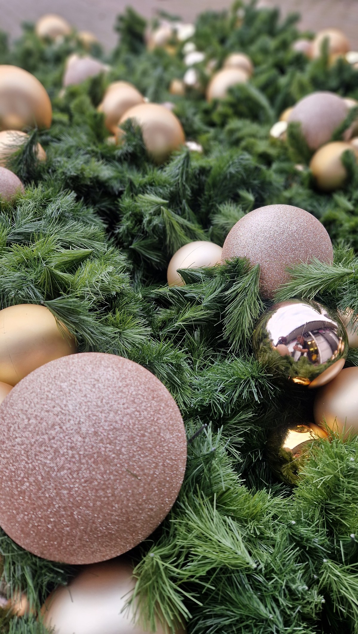 Handmade Christmas garlands for sale, dressed in champagne matt and shiny gold baubles.These beautiful garlands were used once for a commercial installation, all approx. 2.7m long lengths 12x - so appox.32m.