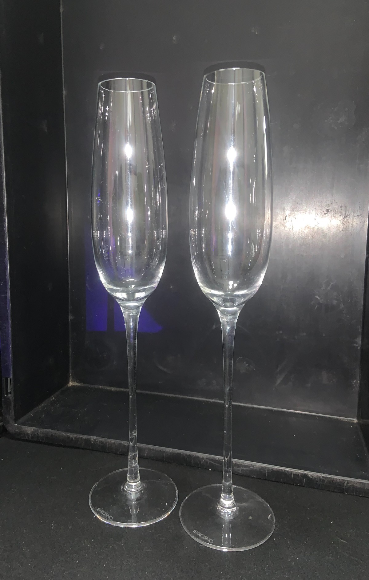 Elegant & Stunning Tall Glass Champagne Flutes (Pair)(Illustration photo with standard sized flutes to give an idea of the actual height/size)