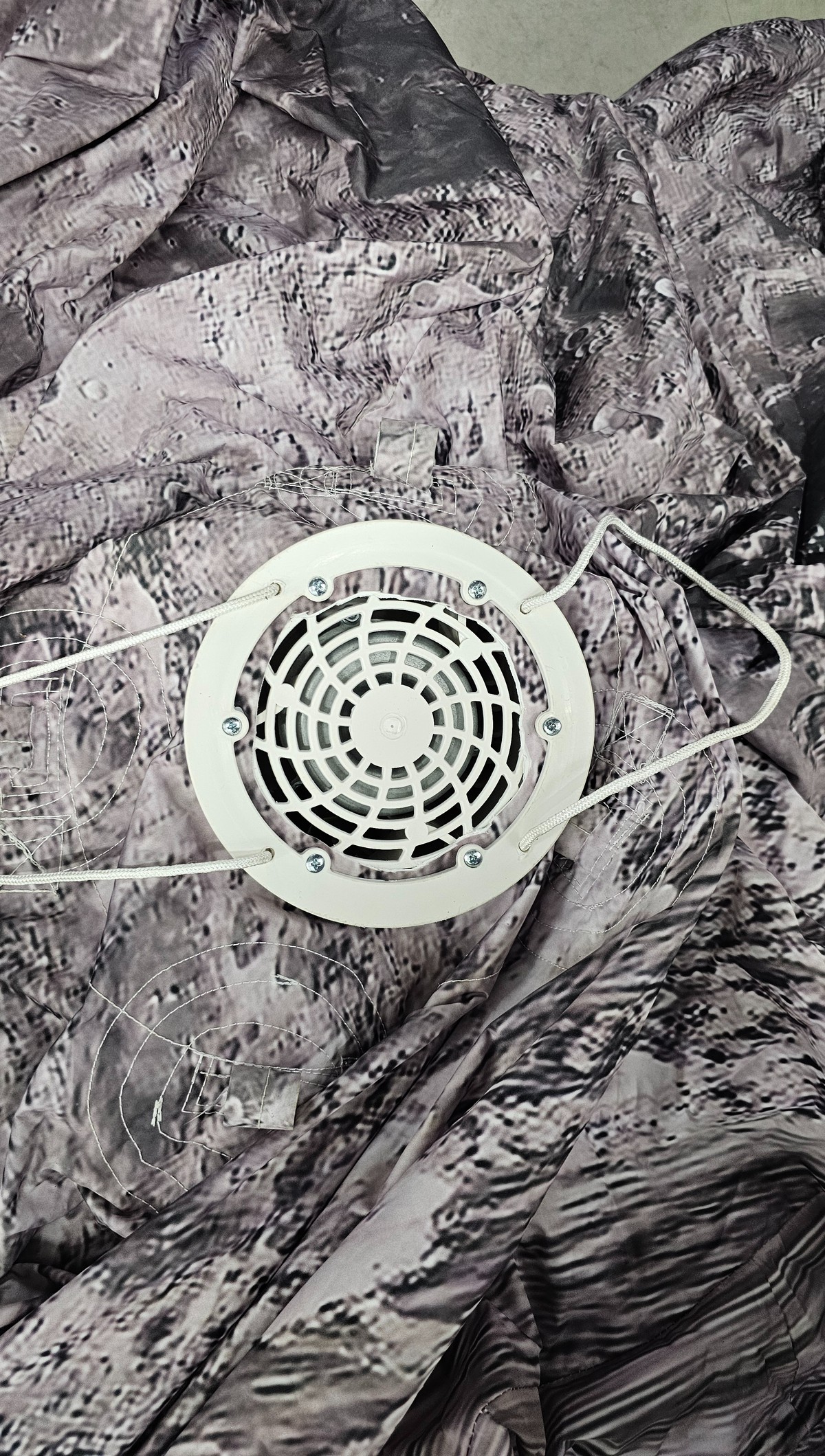 Is produced to be hung so has multiple tether points around the top, but can also be used as a ground inflatable.