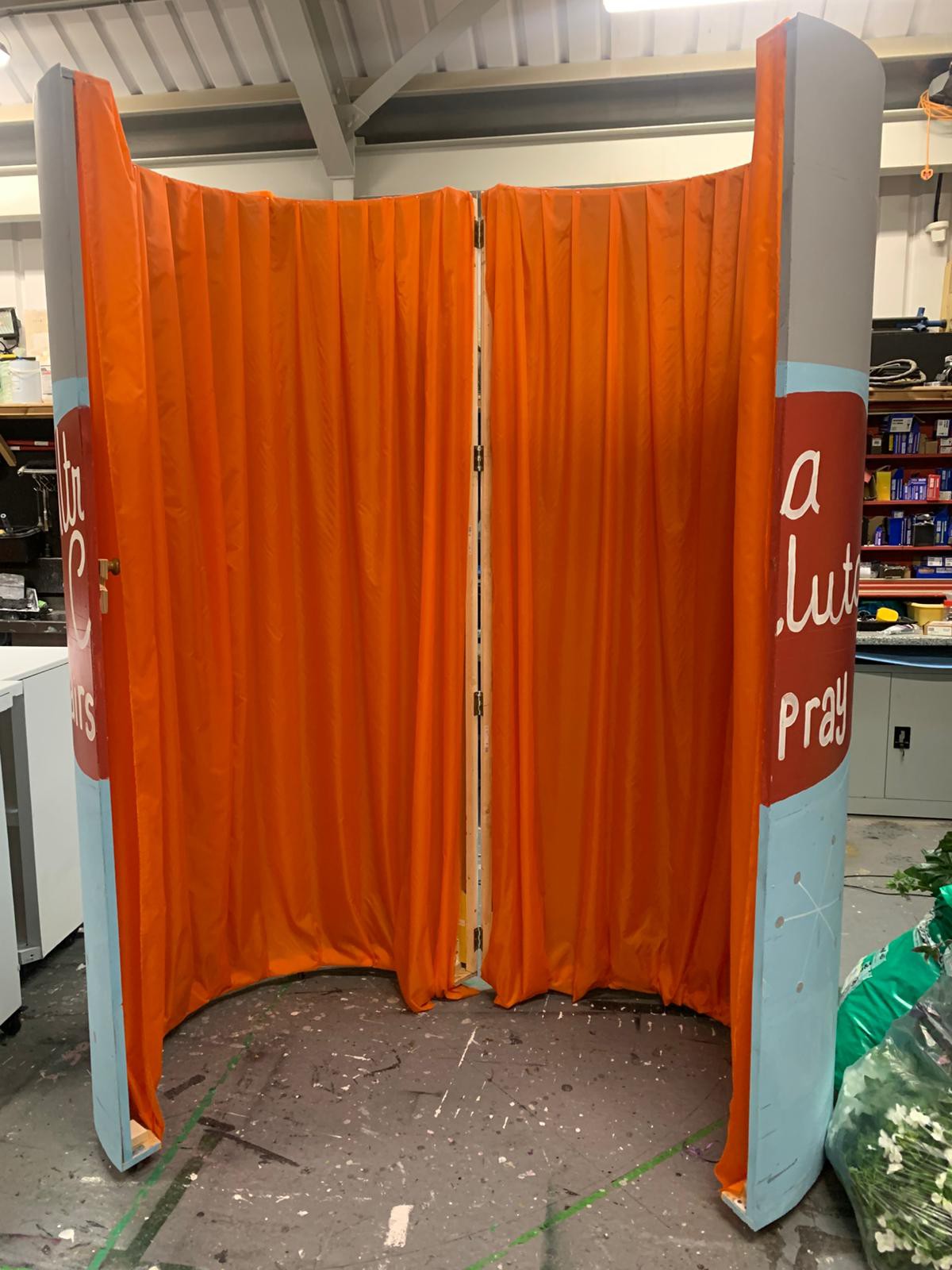 Custom Built 'Ultra Clutch' hairspray can prop for your production of the musical Hairspray. Can is on castors to allow it to be moved into position. This can be achieved with an actor inside as there is no base. The can is locked closed and can be opened on cue by the actor ready for the final reveal at the end of the show. Inside is dressed and looks very impressive.Height - 2490mm