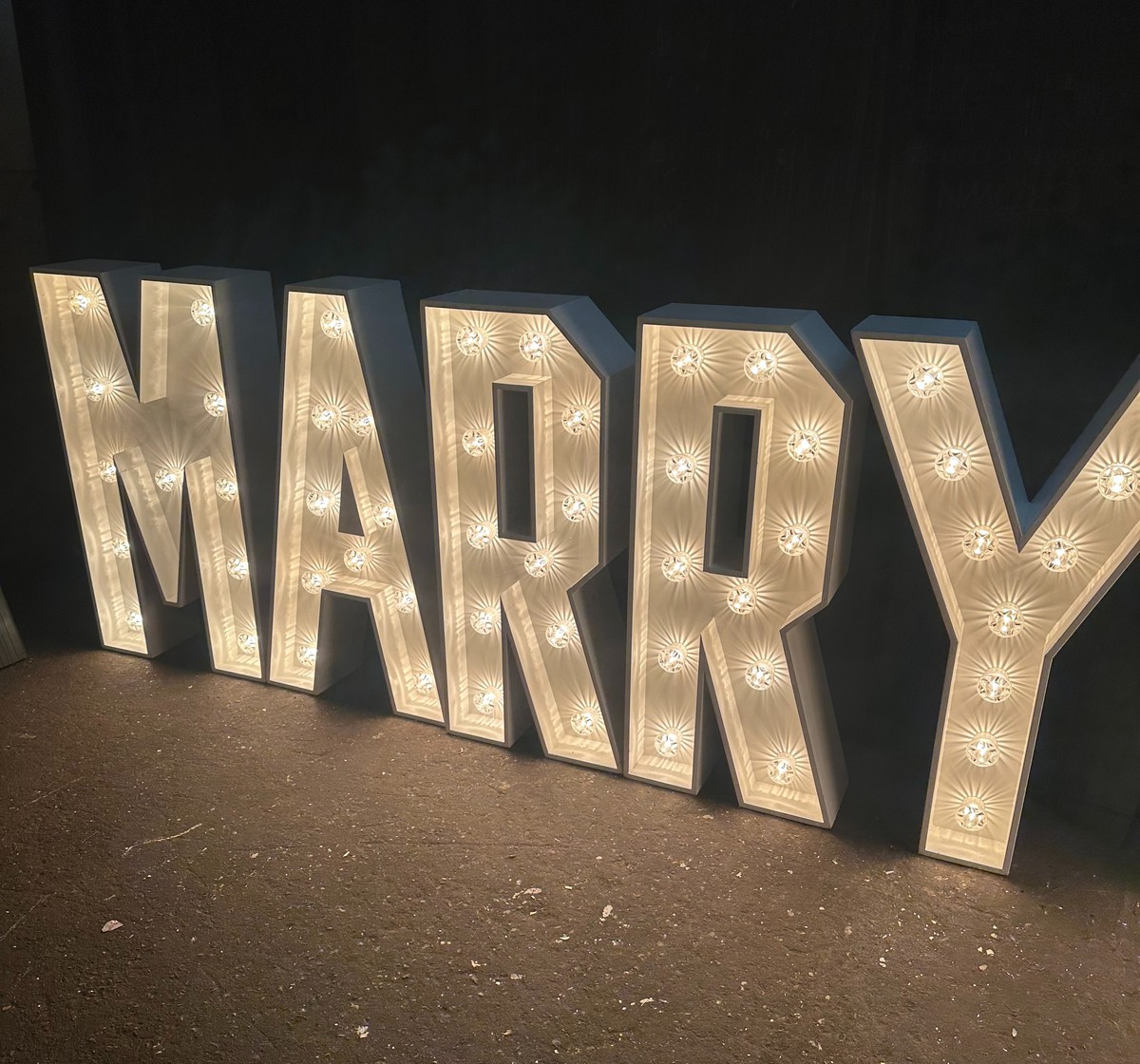 1 Metre High 'MARRY ME' in light up letters.Painted in Satin Wood Valspar paint.
